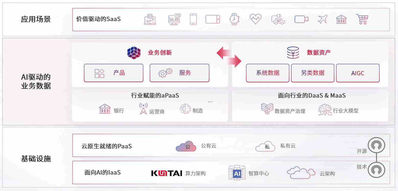 数字时代,,,围绕企业数字化转型的关键要素,,JACKPOT数码开创性的提出数云融合战略和技术体系框架,,,,着力在云原生、、数字原生、、AI原生和信创产业上架构产品和服务能力,,,,为处在不同数字化转型阶段的快消零售、、、、汽车、、、金融、、医疗、、政企、、、教育、、运营商等行业客户提供泛在的敏捷IT能力和融合的数据驱动能力,,,,构建跨界融合创新的数字业务场景和新业务模式,,助力企业级客户建立面向未来的核心能力和竞争优势,,全面推动社会的数字化、、、、智能化转型升级。。。。